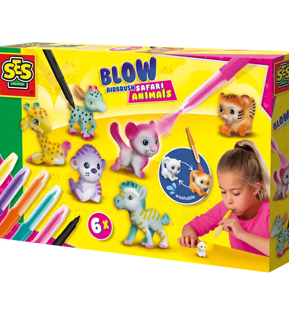 Kreasættet gør det sjovt at favelægge de små safaridyr, ved at puste ned i tuscherne. Den sorte tusch kan bruges til små detaljer til sidst. Dyrene kan vaskes fri for farve og kan farves igen og igen. Perfekt til kreativ udfoldelse.