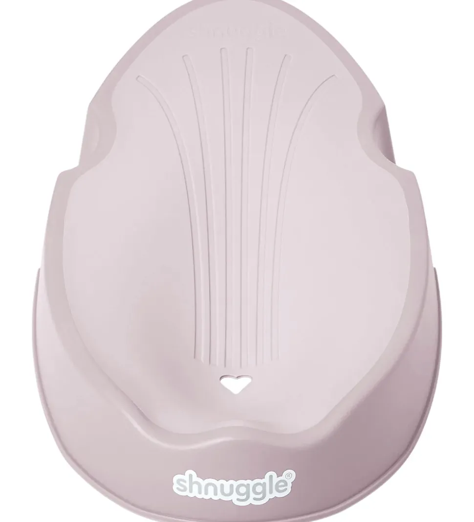 Lækker Shnuggle badestøtte i en varm, rosa nuance med et ergonomisk design.