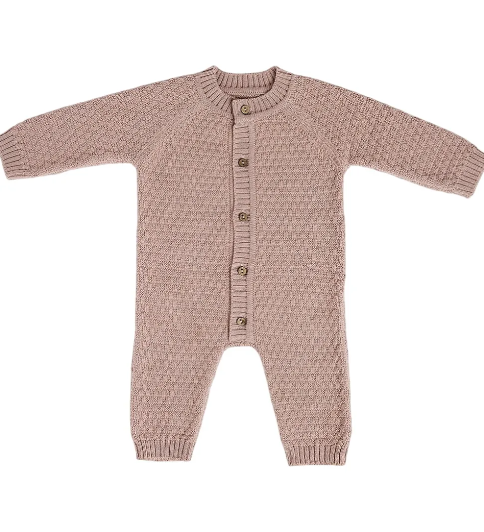 Flot Smallstuff heldragt i en varm lyserød nuance med en finstrikket struktur. Rund halsudskæring og en smuk struktur i mønsteret pryder designet.