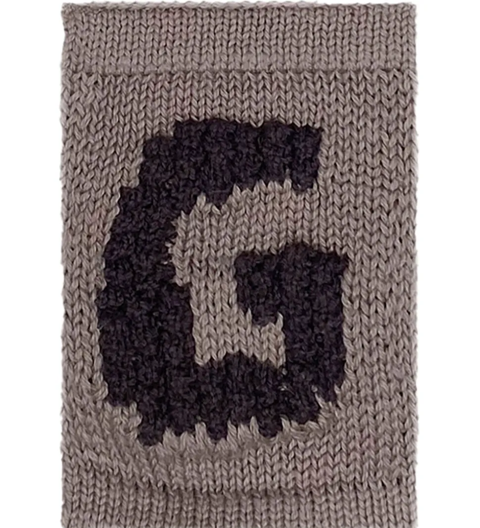 Fin Smallstuff bogstav i lysebrun med en strikket struktur og bogstavet “G” i mørkebrun. Med Smallstuff bogstavet kan du kombinere bogstaver og motiver og danne en sød flagranke med barnets navn.