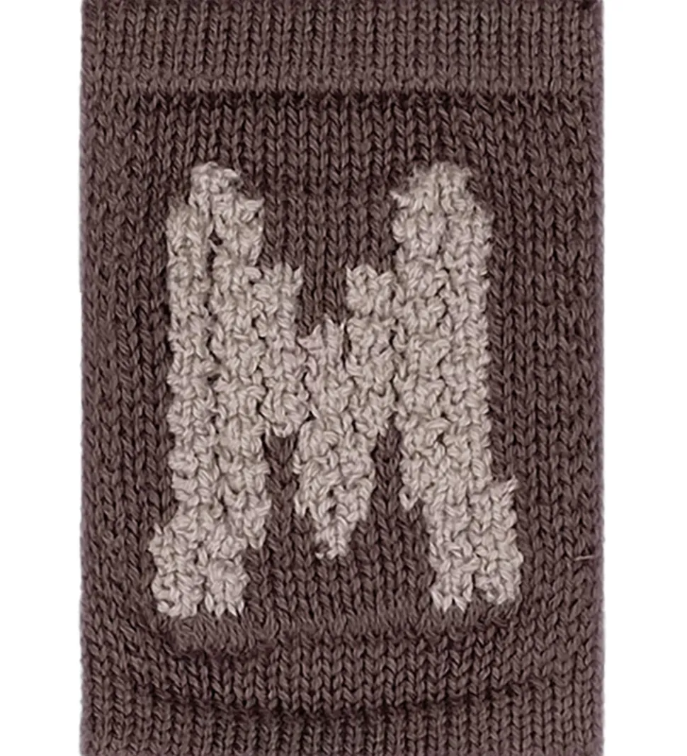 Fin Smallstuff bogstav i brun med en strikket struktur og bogstavet “M” i beige. Med Smallstuff bogstavet kan du kombinere bogstaver og motiver og danne en sød flagranke med barnets navn.