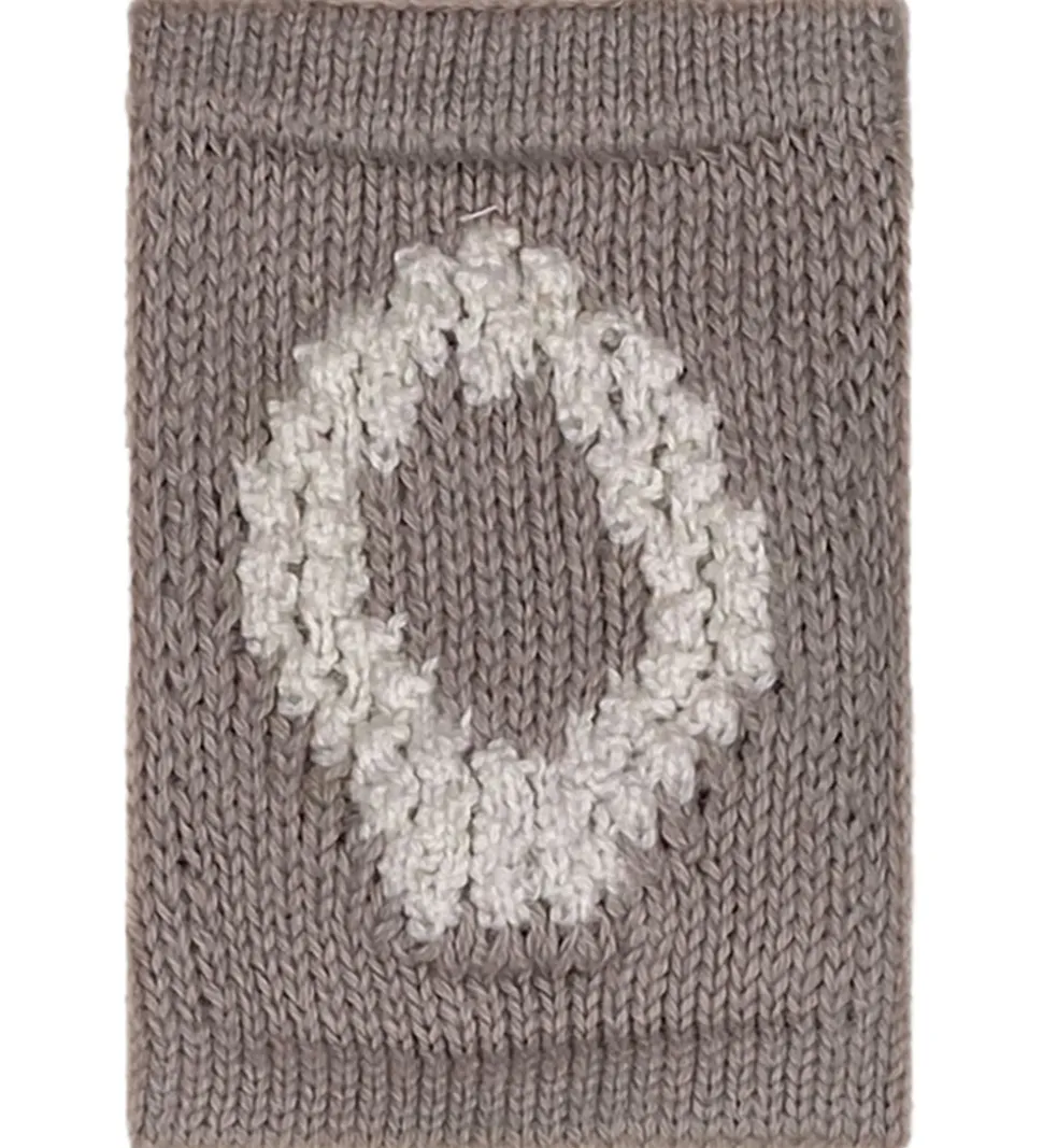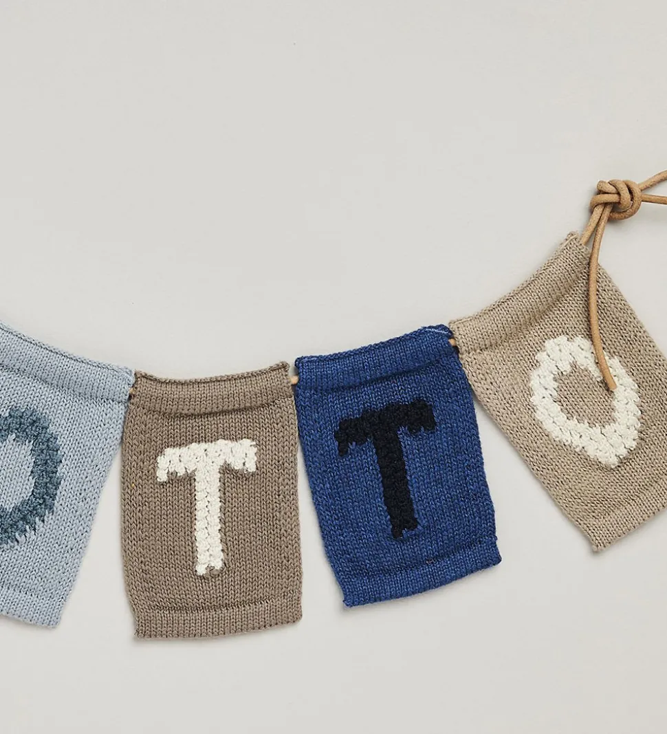 Fin Smallstuff bogstav i lysebrun med en strikket struktur og bogstavet “O” i hvid. Med Smallstuff bogstavet kan du kombinere bogstaver og motiver og danne en sød flagranke med barnets navn.