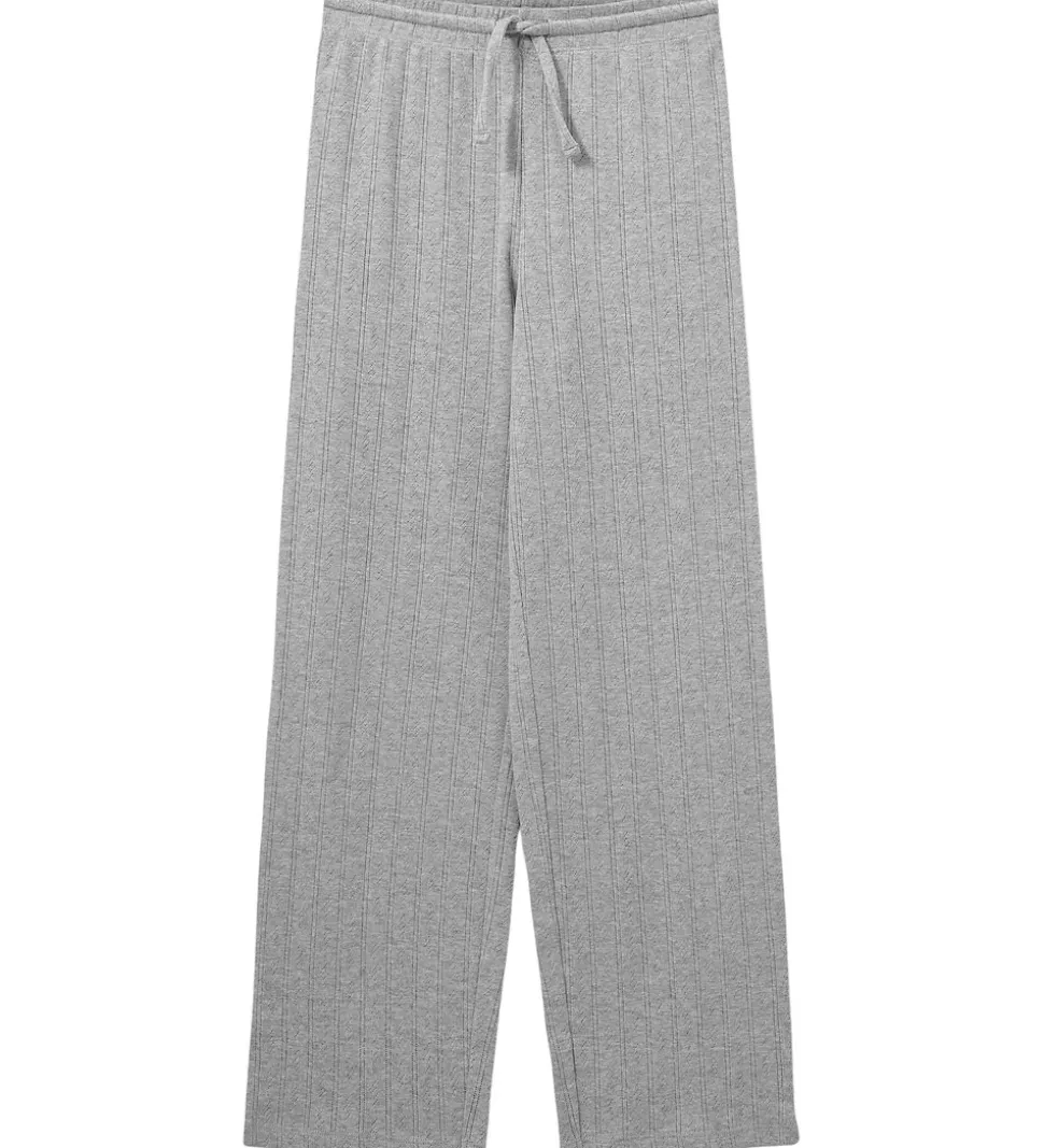 Stilfulde bukser fra Sofie Schnoor i en enkel, gråmeleret farve. Sofie Schnoor bukserne har en løs pasform med en elastisk talje og snører for justering. Der er et fint hulmønster, der pryder overfladen. Buksebenene er lige, hvilket giver et klassisk look.