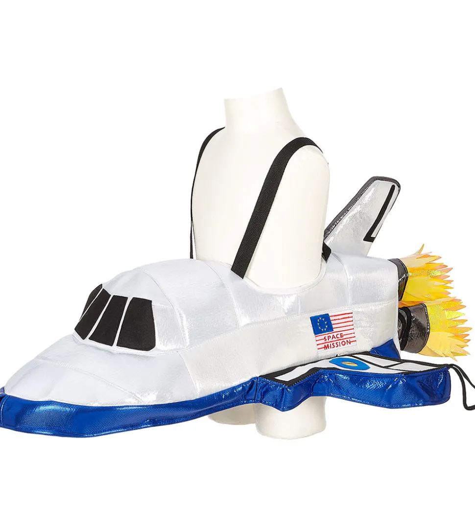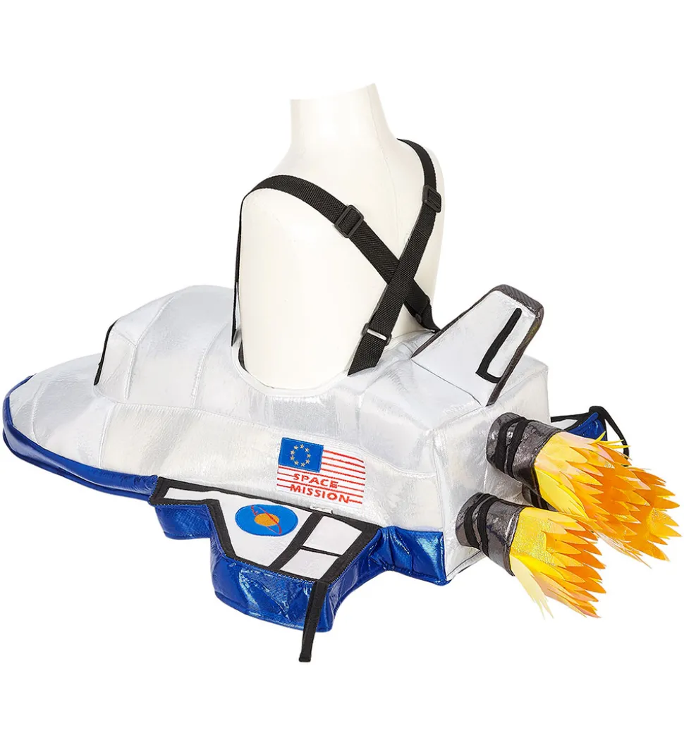 Souza udklædningen er lavet med justerbare seler og bæres, så det ligner, at barnet sidder i rumraketten.
