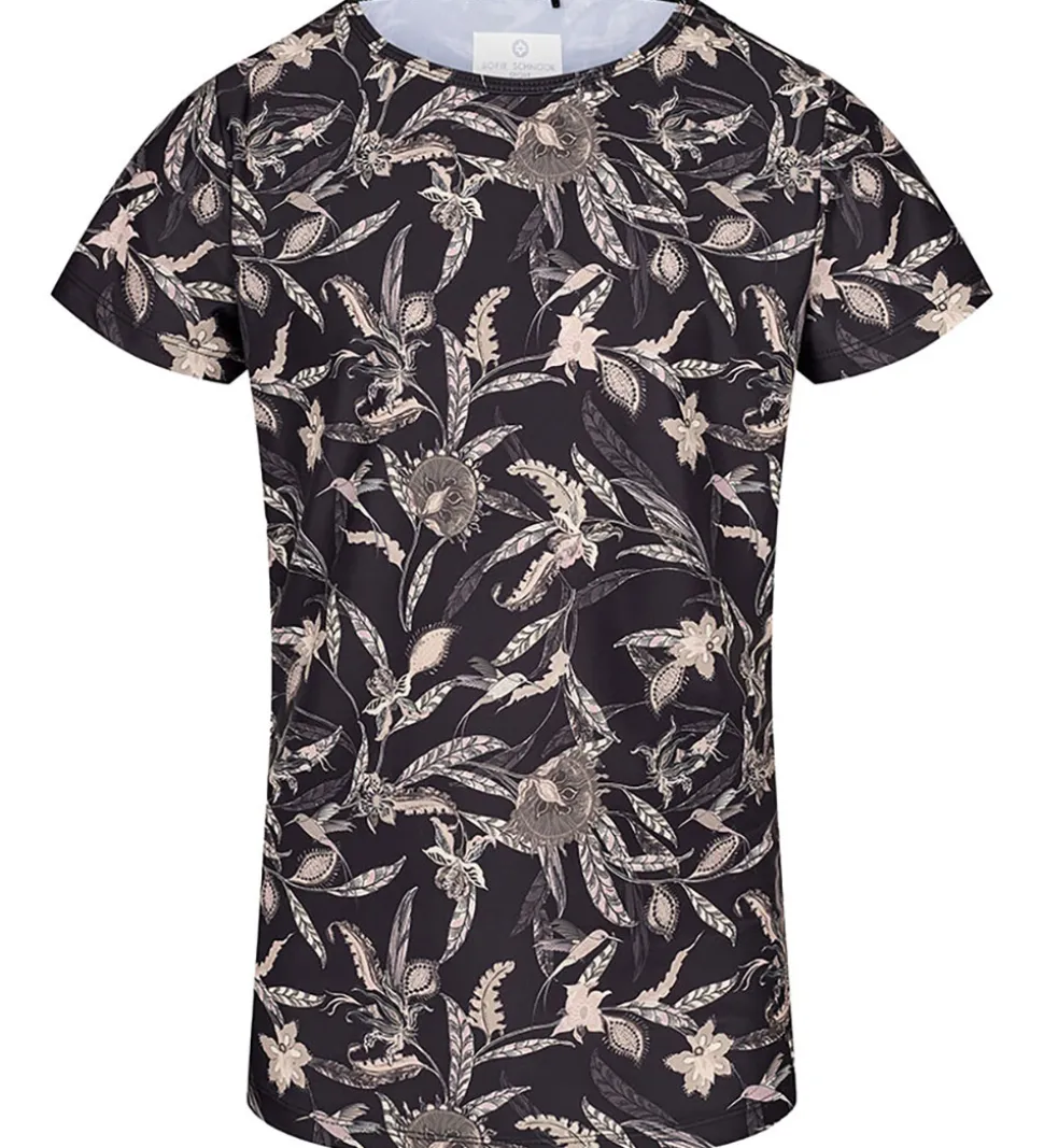 Fin Sport by Sofie Schnoor t-shirt i sort med et blomsterprint i sart rosa og armygrønne nuancer.