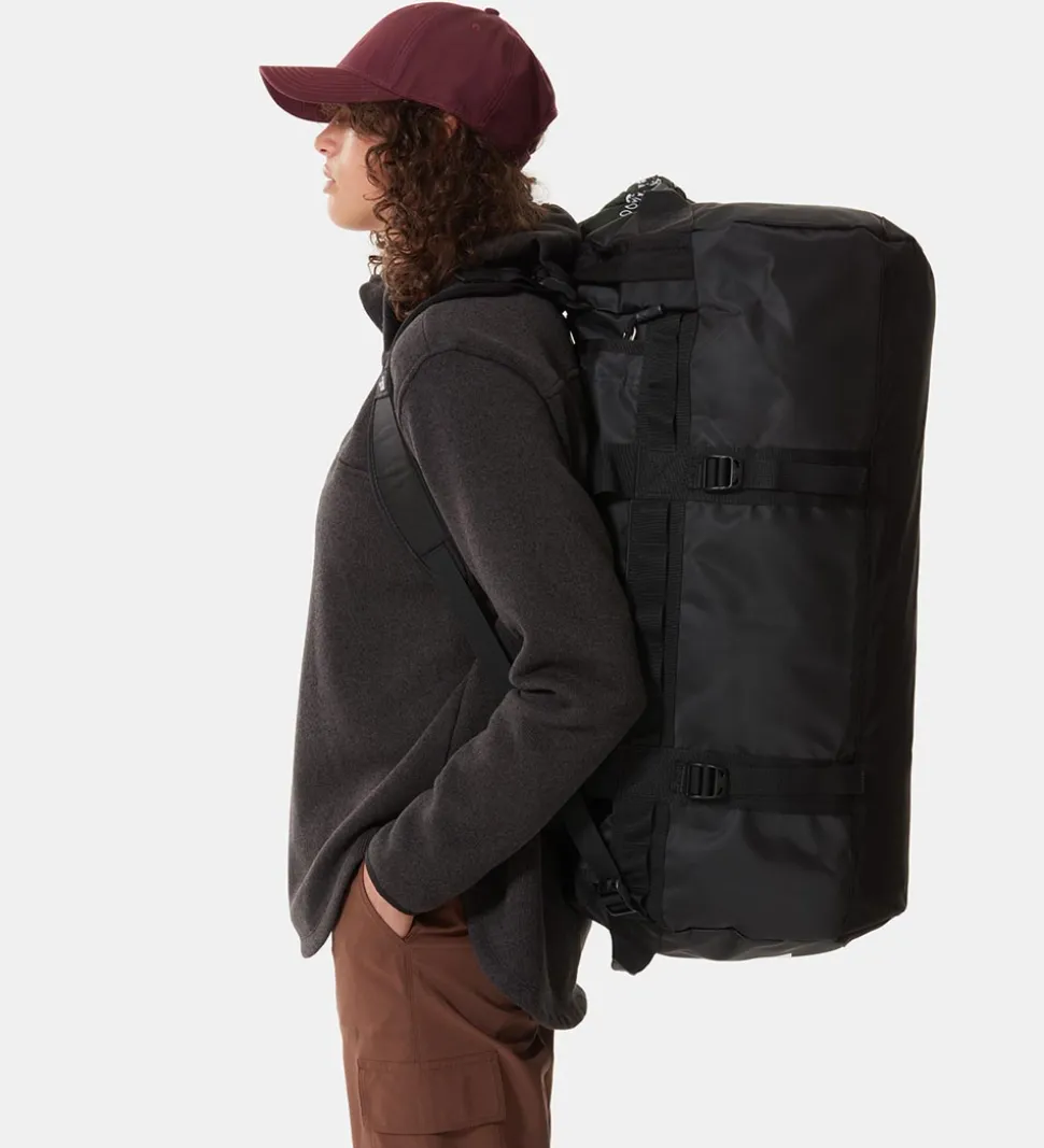 The North Face tasken har polstrede håndtag i siderne fungerer både som bære- og trækhåndtag, samt aftagelige og justerbare skulderstropper, så tasken kan bæres som en rygsæk. Der er fire kompressionsstropper, som kan benyttes hvid der bliver pakket lidt for meget. Derudover er der en lynlåslomme, så du kan adskille beskidte sko eller vådt tøj fra hovedrummet.