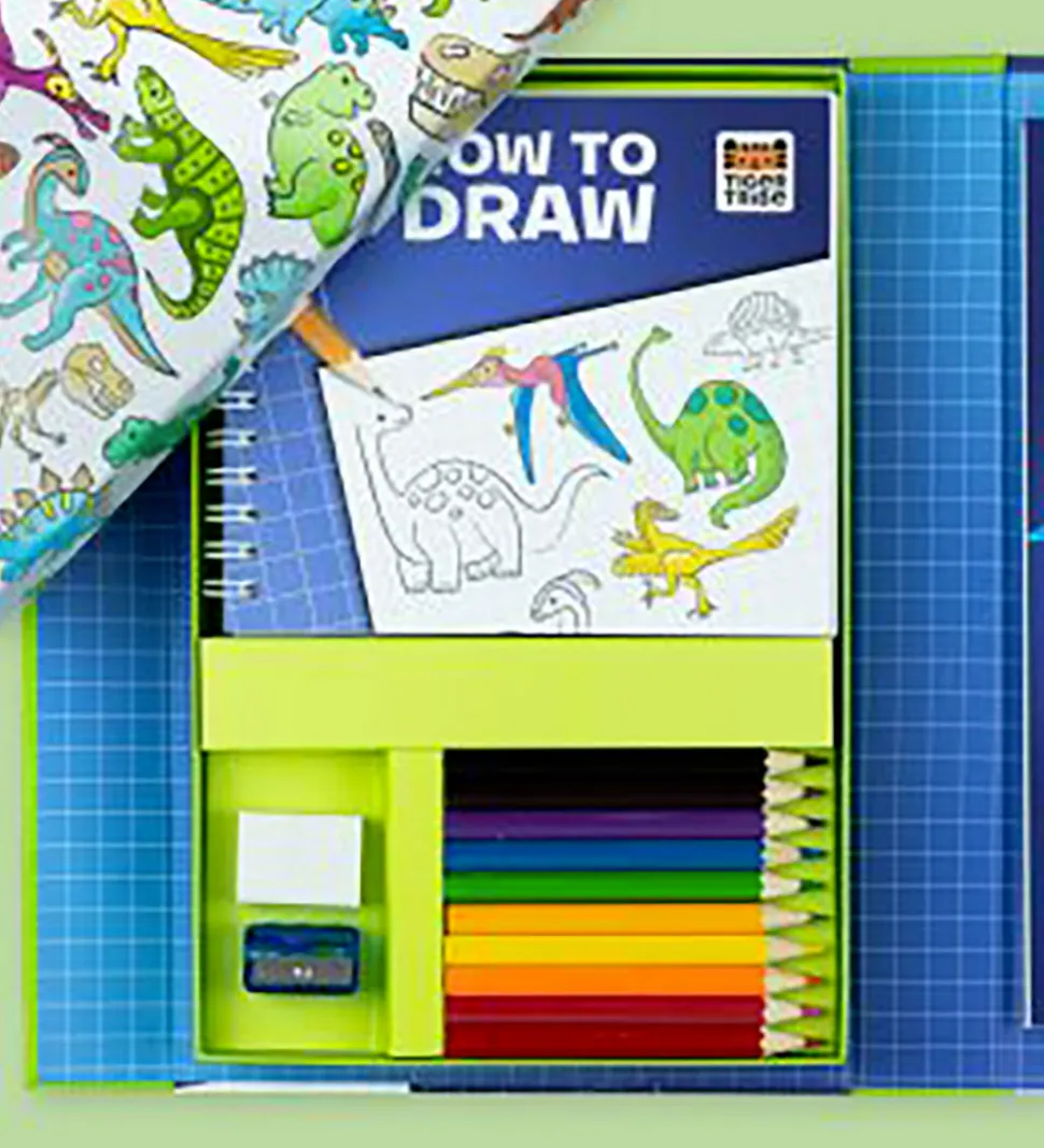 Sjovt Tiger Tribe tegnesæt med dinosaurmotiver.