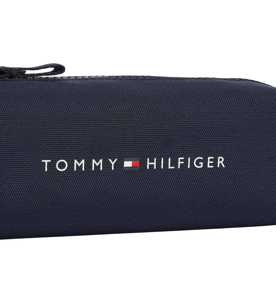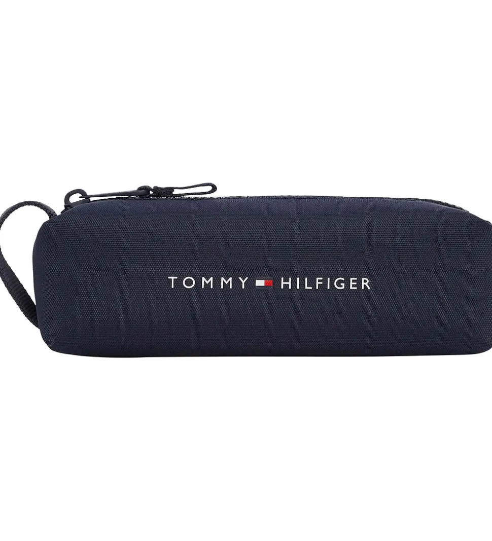 Smart Tommy Hilfiger penalhus i mørkeblå med et logoprint i brandets, originale farver.
