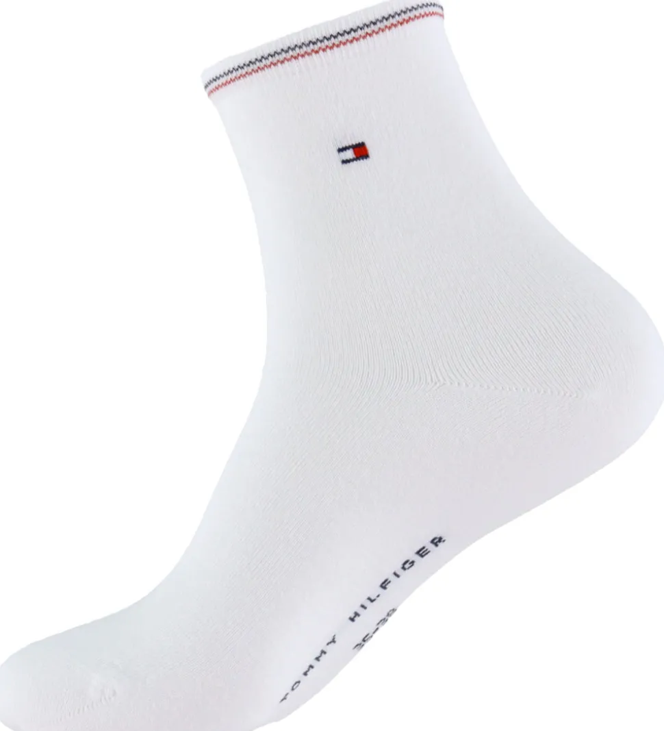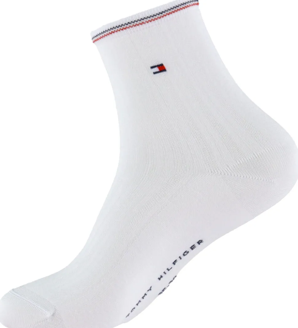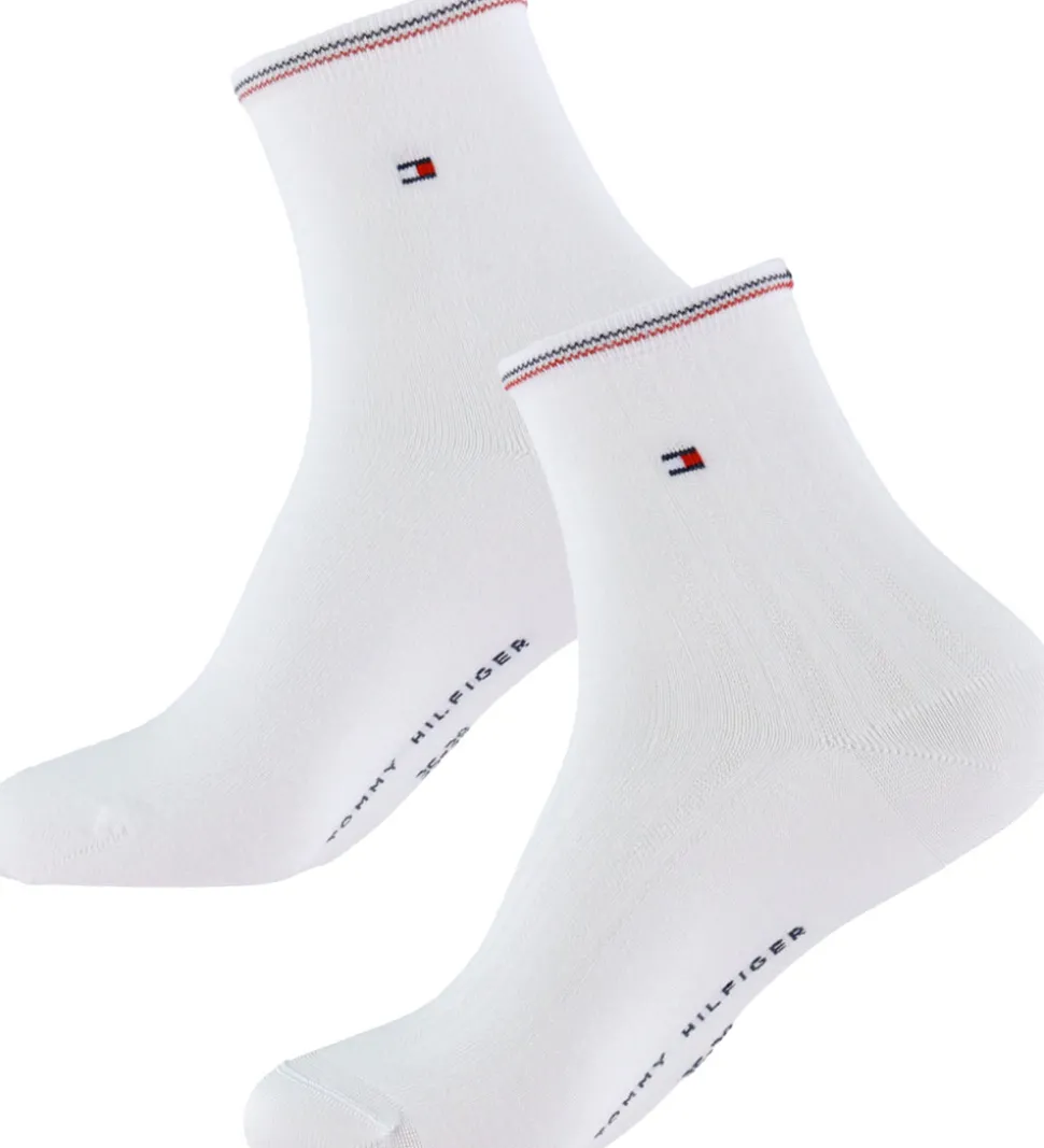Fine Tommy Hilfiger strømper i en 2-pak i ensfarvet hvid med det ikoniske logo i et lille broderi. Det ene par strømper er har ribstruktur, og de har en blød hæl og tå af viskose. Det andet par er glatstrikket. Begge par strømper har en smal elastikkant.