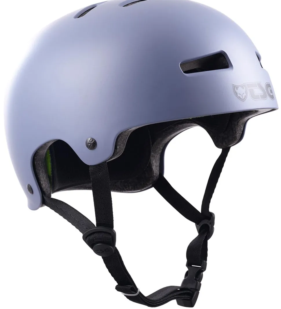 TSG cykehjelmen har form som en skaterhjelm. Den spændes under hagen med justerbare remme og et praktisk klikspænde. I toppen er der praktiske lufthuller.
