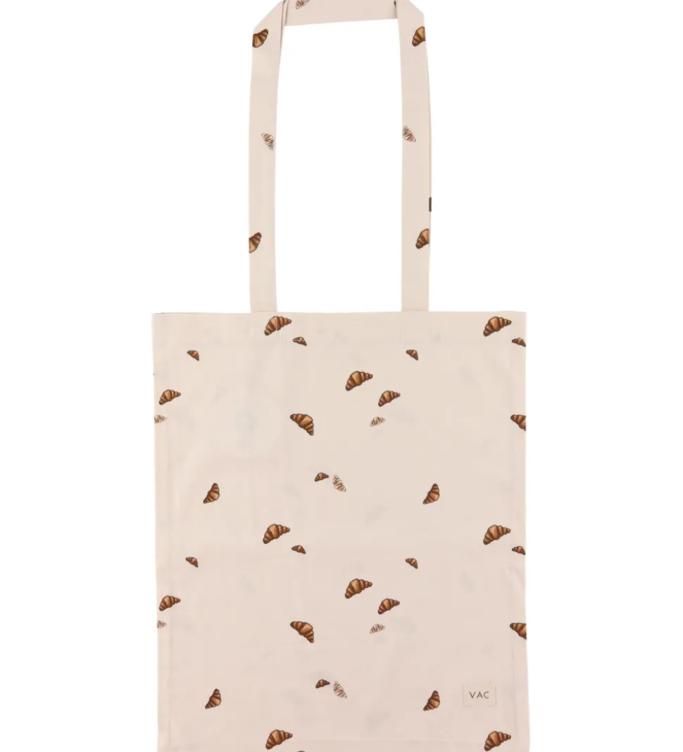 Fin VACVAC shopper i creme med et print med croissanter i brune nuancer.