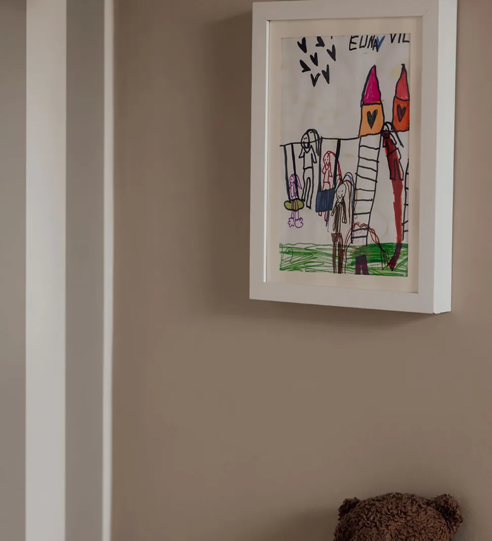 Vanilla Copenhagen gallerirammen gør det nemt både at udstille og gemme børnenes flotte tegninger og malerier et og samme sted. Rammen er i MDF, mens glasset er af akryl, der ikke splintrer. Bagpå er der vægophæng til både vertikal og horisontal orientering.