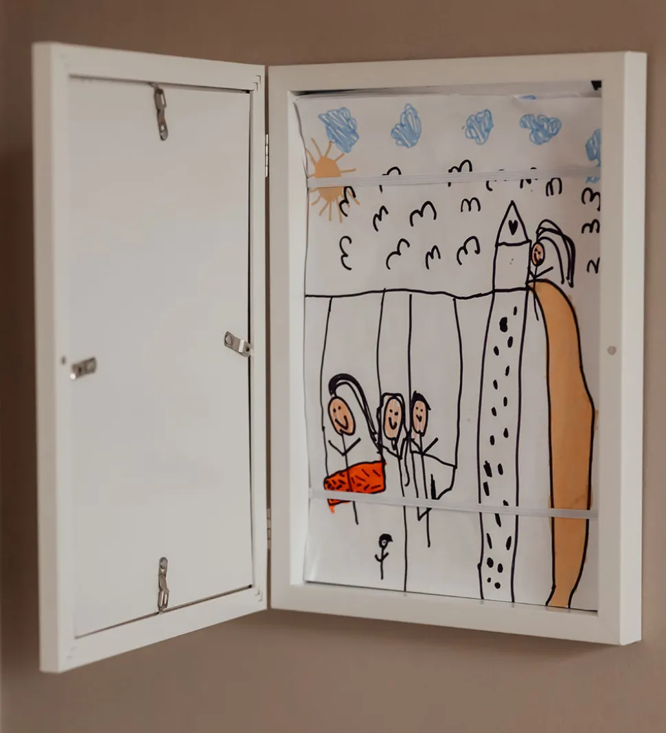 Fin Vanilla Copenhagen galleriramme i hvid med plads til op til 80 A4-tegninger/malerier.