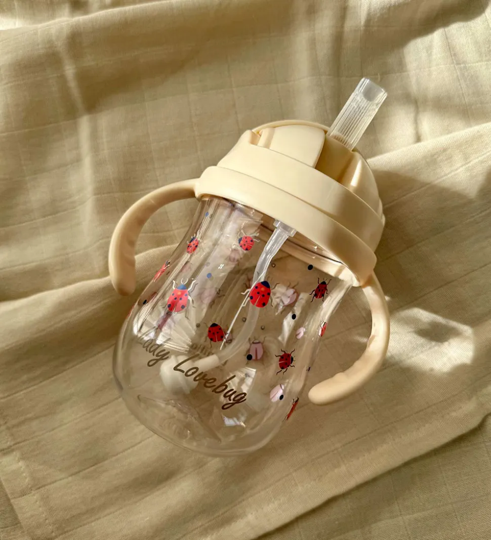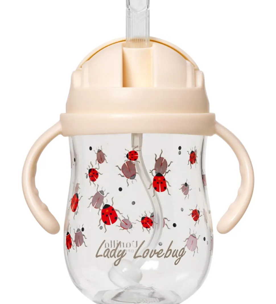 Fin Vanilla Copenhagen kop med sugerør med beige låg og et charmerende mariehøneprint.