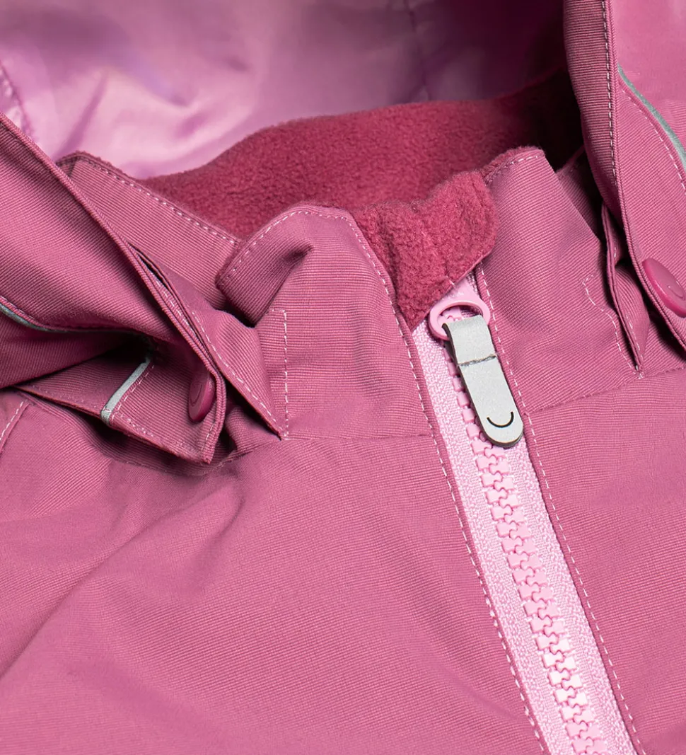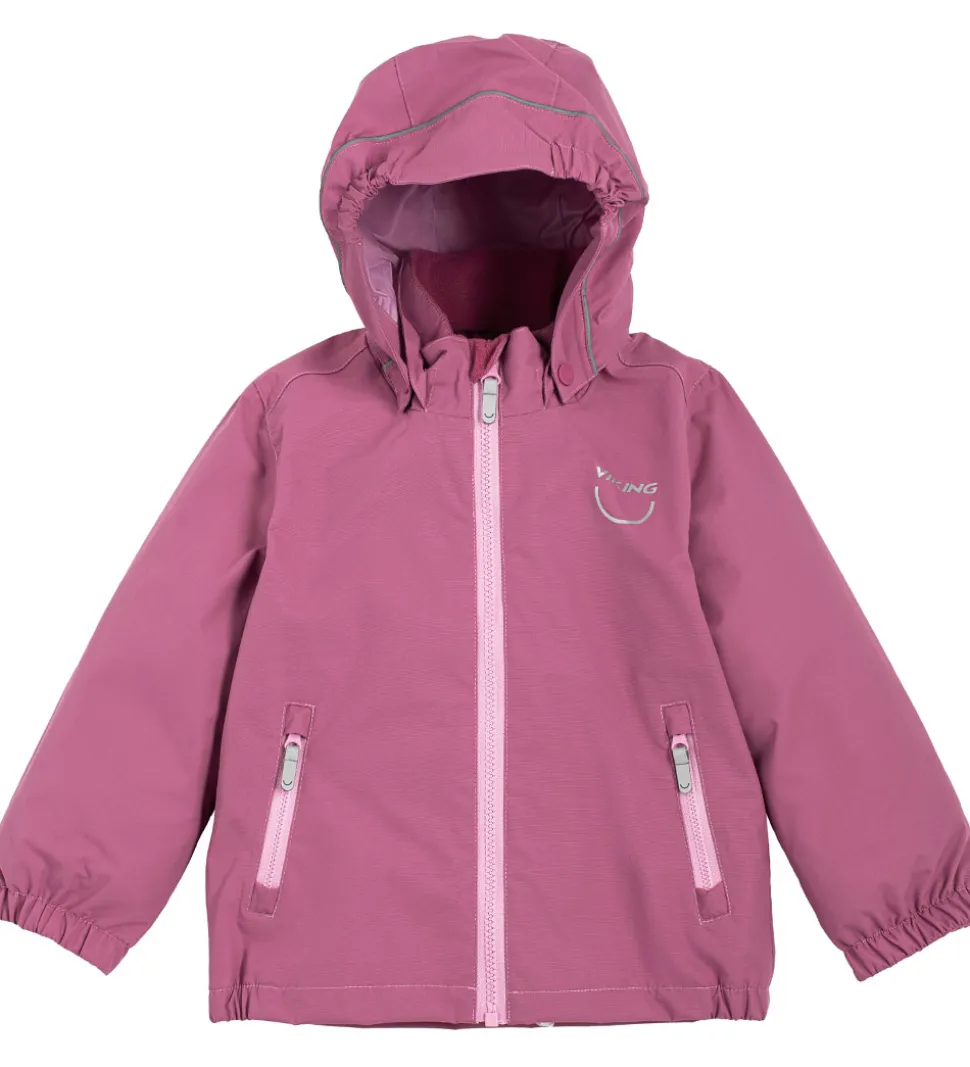 Lækker Viking sommerjakke blommelilla med reflekslogo og mange refleksdetaljer. Lynelåsene er i rosa.