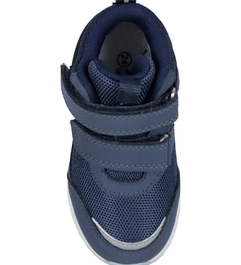 Flotte Viking støvler i blåt mesh og imiteret skind med et hvidt logoprint samt teksten “Gore-Tex” i blå på ydersiden.
