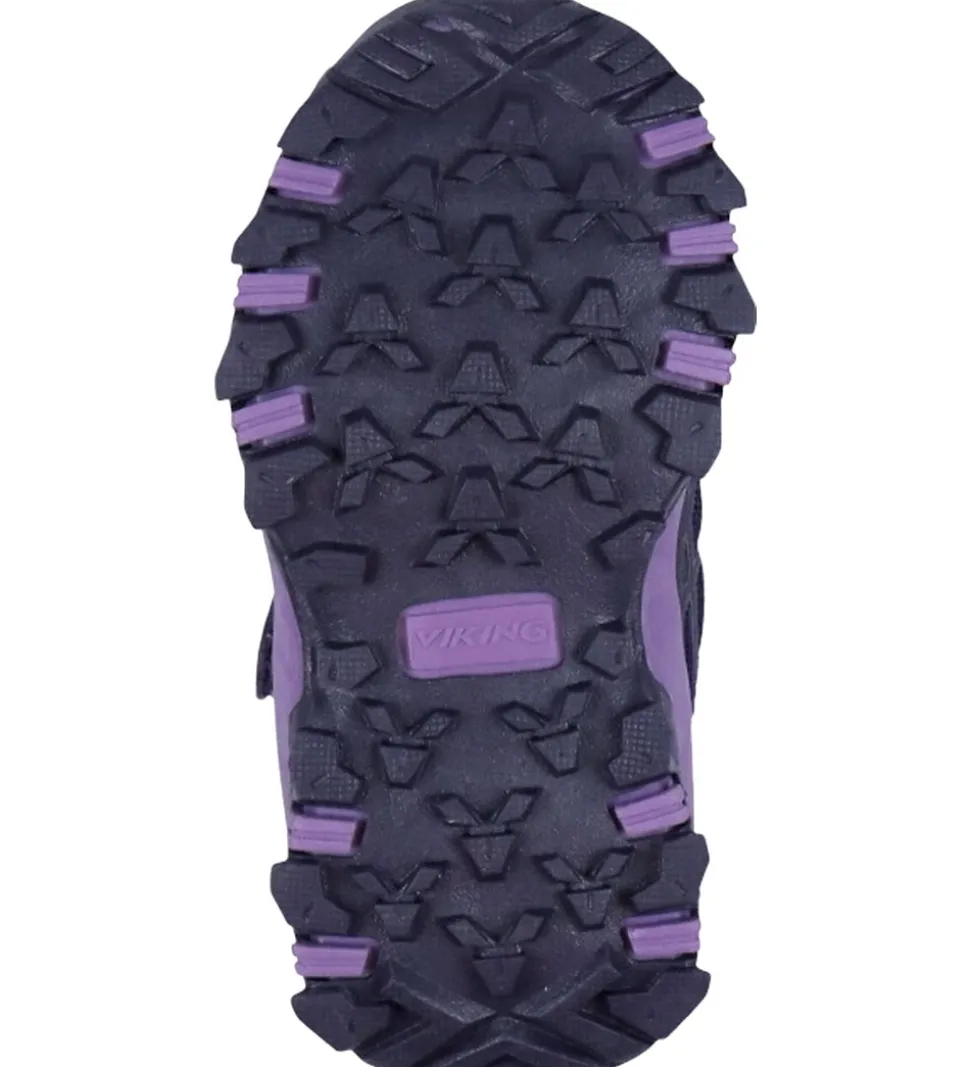 Smarte Viking støvler i mørk lilla med et logoprint i sølv på ydersiden af hælen.