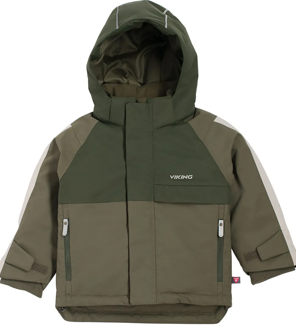 Viking vinterjakken har en aftagelig hætte, som sidder fast med skjulte trykknapper og med velcro fortil. Kanten af ærmerne kan strammes ind med velcro og der er praktiske snefang med ribstruktur. I bunden kan vinterjakken strammes ind med en elastiksnøre.