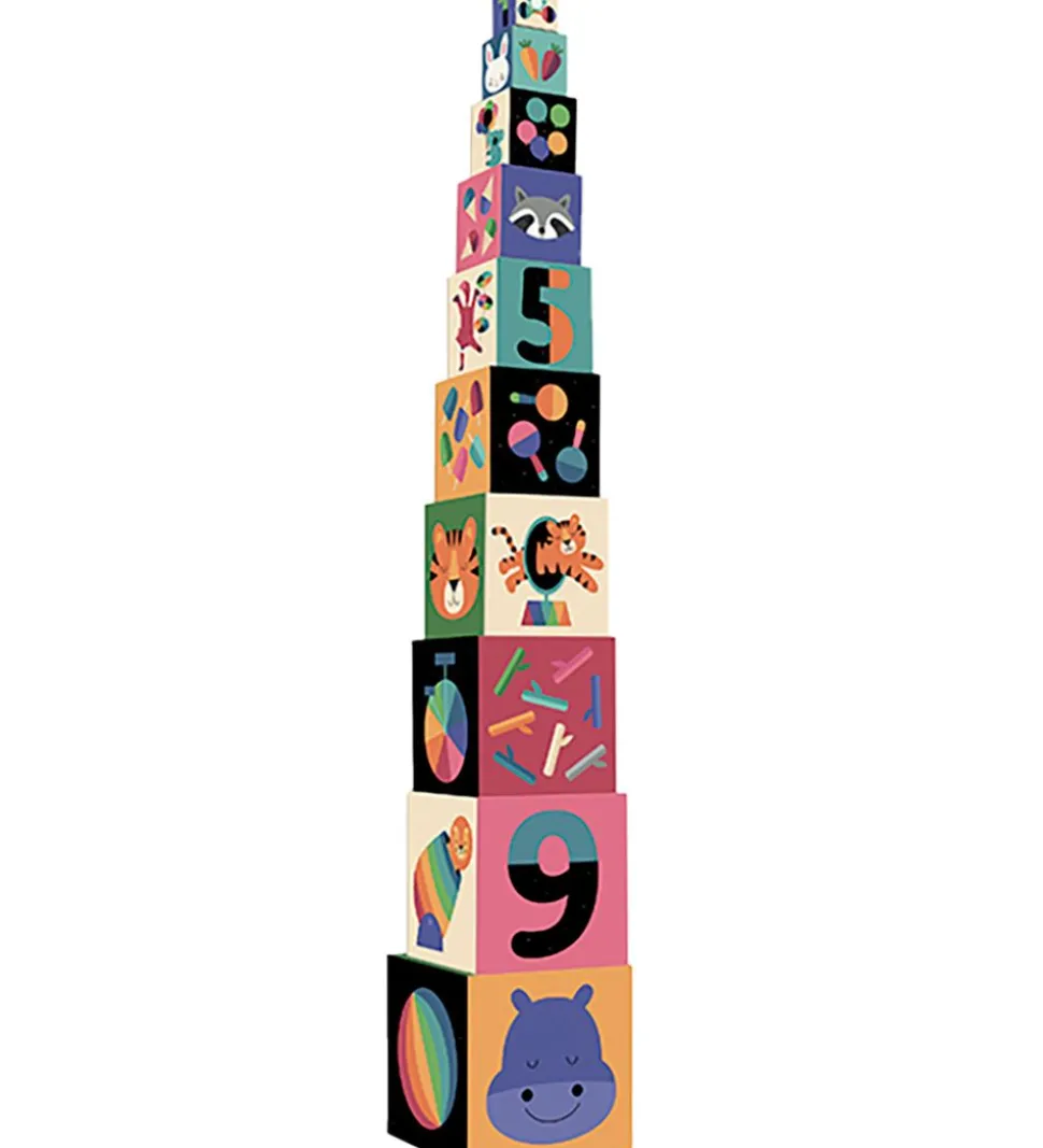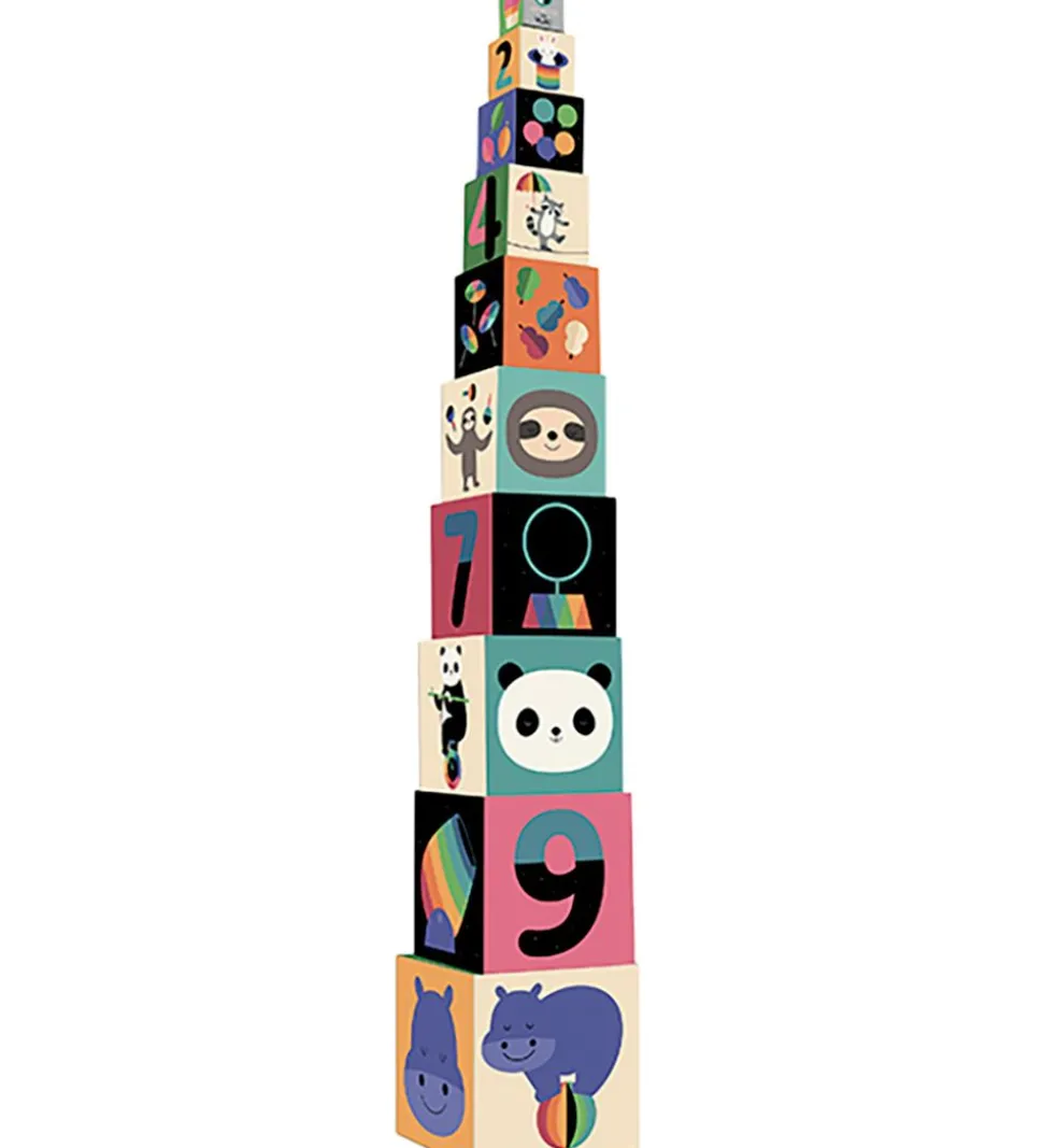 Vilac stableklodserne består af 10 klodser, som kan stables ovenpå hinanden. Klodserne kan bruges som inspiration til læring, leg og motorisk udvikling.