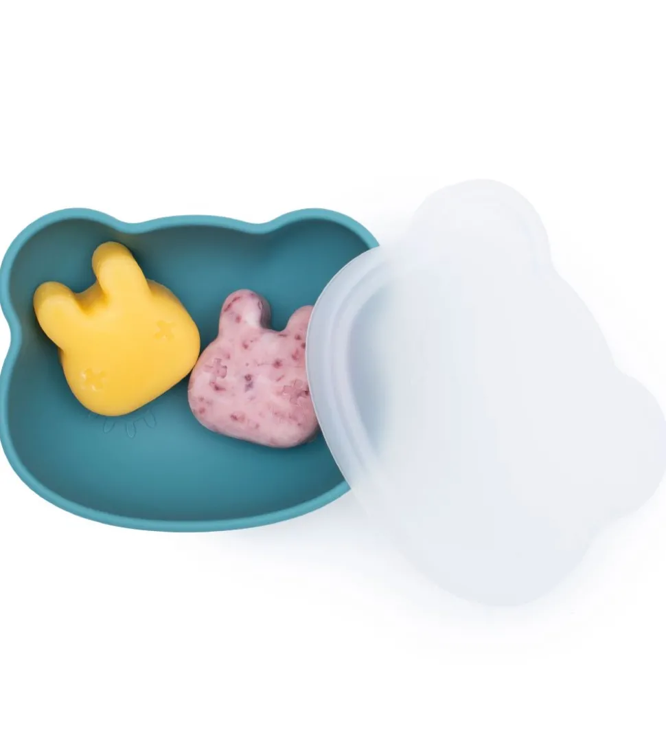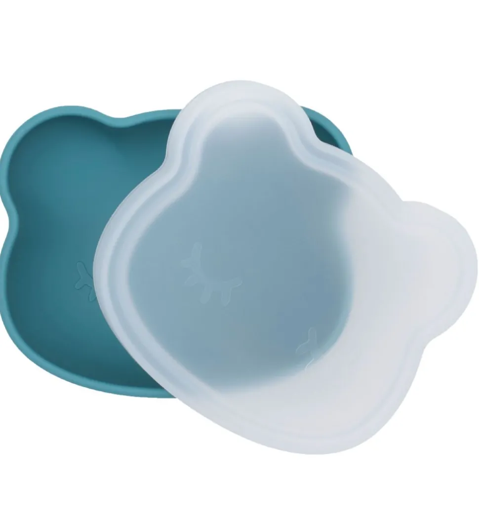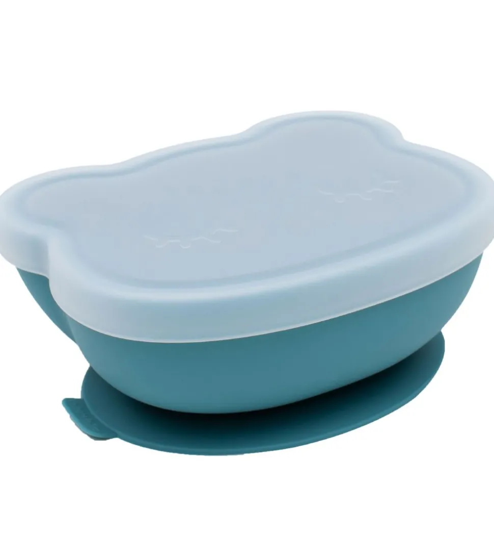 We Might Be Tiny skålen er lavet af fleksibelt silikone, og den kan indholde lækre snacks og mad. Under bunden er der en praktisk sugekop, som kan sættes fast på næsten alle flade overflader. Den forhindrer at barnet kan rykke og vælte skålen. Hvis der er rester til overs, kan man blot sætte låget på og stille det i køleskabet.