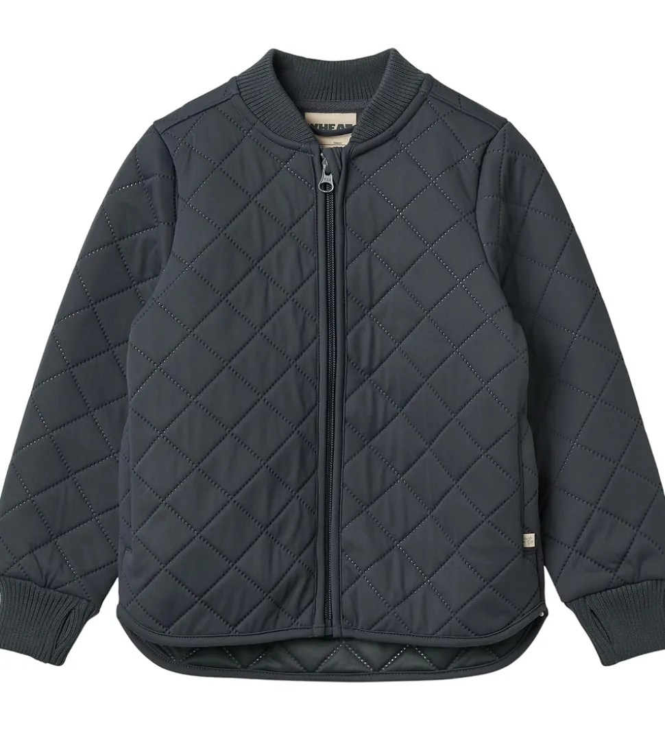 Lækker Wheat termojakke i ensfarvet, mørk koksgrå. Termojakken har en quiltet struktur.