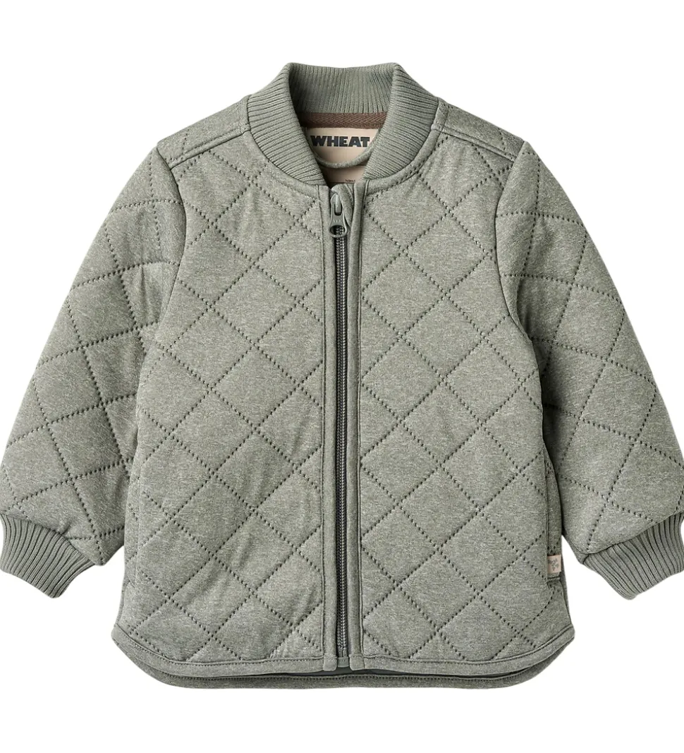 Skøn Wheat termojakke i ensfarvet, meleret grå. Termojakken har en quiltet struktur.